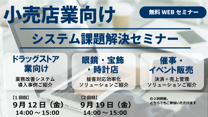 「小売業向けシステム課題解決セミナー」開催お申込みは下記より、・9月12日(金)のお申込み・9月19日(金)のお申込み